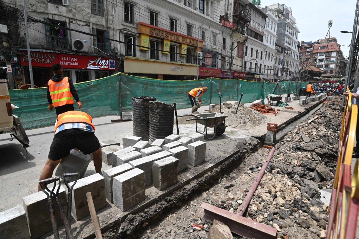 काठमाडौँ महानगरले गर्यो पुन: न्युरोडमा फुटपाथ विस्तार